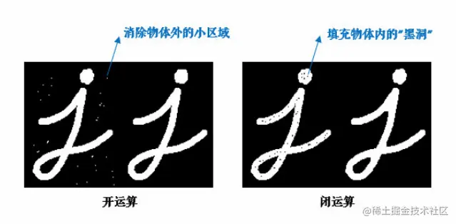 先腐蚀后膨胀叫开运算(因为先腐蚀会分开物体,这样容易记住),其作用是:分离物体,消除小区域。