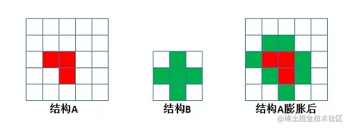可以理解为,移动结构B(核),如果结构B与结构A的交集完全属于结构A的区域内,则保存该位置点,所有满足条件的点构成结构A被结构B腐蚀的结果。
