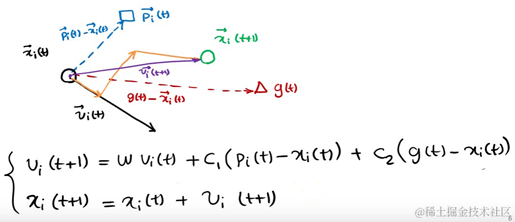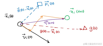 下一个位置为上图所示由x,p,g共同决定了