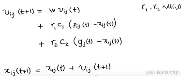 p(t)为在t时刻x个体的自己的最优解,g(t)为在t时刻所有个体的最优解,v(t)为个体在t时刻的方向,x(t)为个体在t时刻的位置