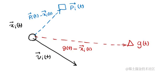 下一个位置为上图所示由x,p,g共同决定了