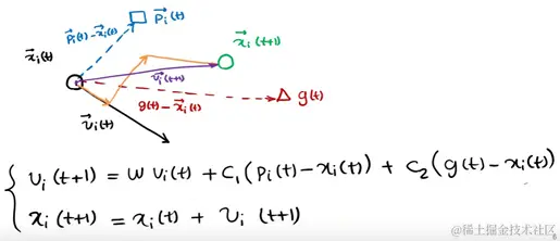下一个位置为上图所示由x,p,g共同决定了