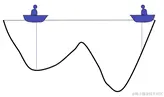 在一个湖中有两个人他们之间可以通信,并且可以探测到自己所在位置的最低点。初始位置如上图所示,由于右边比较深,因此左边的人会往右边移动一下小船。