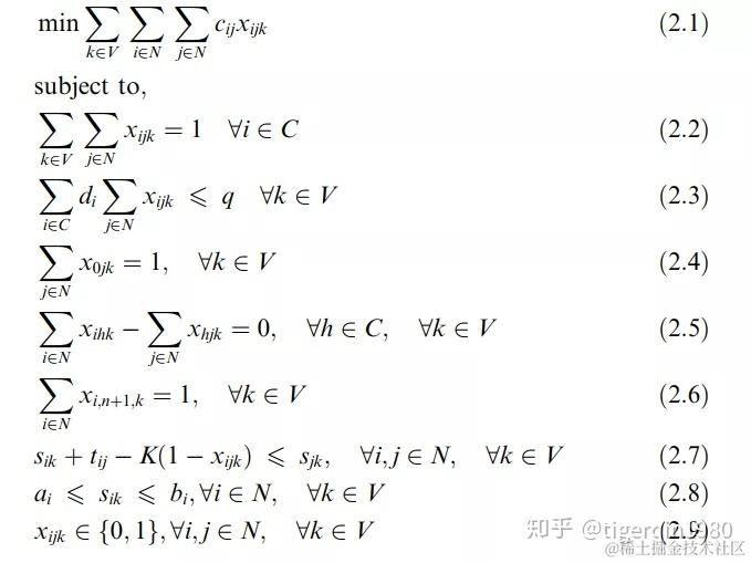 VRPTW的数学模型如下: