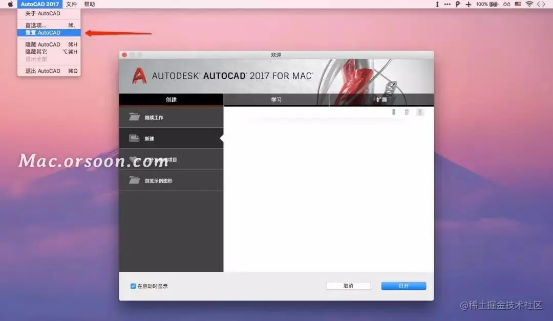 关于mac版 CAD 汉化后无法新建模板问题的解决方法 Mac迪迪卫 2021-06-30 167 阅读1分钟 问题: CAD for Mac 汉化后,新建选项里面没有待选模板,只能打开电脑里已有的 dwg 文件。 解法: 单击左上角 CAD菜单 > 重置 CAD 即可; 重置后待选模板将再次出现。