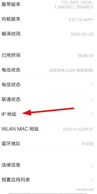 这里我们无需准备数据线也可以连接上我们的安卓机,只要你三个步骤完成好了,就简单了。我们首先需要知道安卓真机的IP地址,可在这里查看,如图: