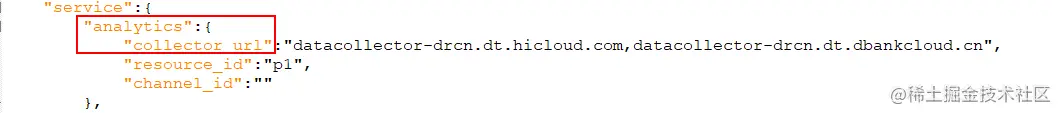 2.2 项目添加的json是在开通华为分析后的。Json里面包含这些信息: