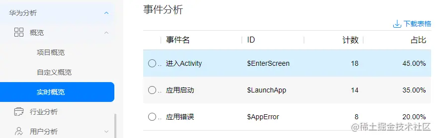 2.3 查看华为分析“实时概览”,是否有数据上报