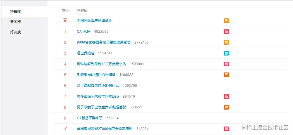 微博的热搜数据Api接口如下: