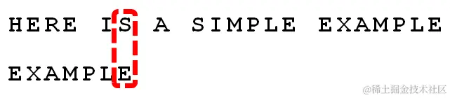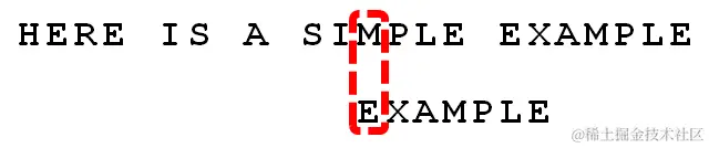 1. 首先,"文本串"与"模式串"头部对齐,从尾部开始比较。"S"与"E"不匹配。这时,"S"就被称为"坏字符"(bad character),即不匹配的字符,它对应着模式串的第6位。且"S"不包含在模式串"EXAMPLE"之中(相当于最右出现位置是-1),这意味着可以把模式串后移6-(-1)=7位,从而直接移到"S"的后一位。