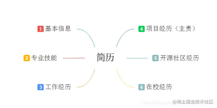 我的简历划分成为下面6部分,标号代表着简历内容从上到下的顺序