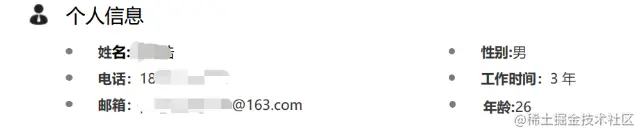 一些个人基本信息,像姓名,电话,邮箱,毕业院校,学历这些是必要的基本信息。有Github或者技术博客的可以加上超链接,但是Github和博客没有内容的话建议别加。