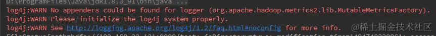 今天在运行某程序时出现了如上图所示的问题,查找资料后发现是由于由于log4j这个日志信息打印模块的配置信息没有给出造成的,简单的说就是人家要有个地方来存放日志的打印信息,可是你又不给人家,所以就报错了吧