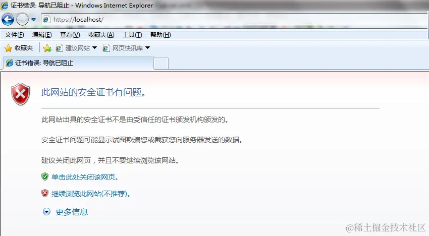 这里浏览器显示证书错误, 有红色警告
