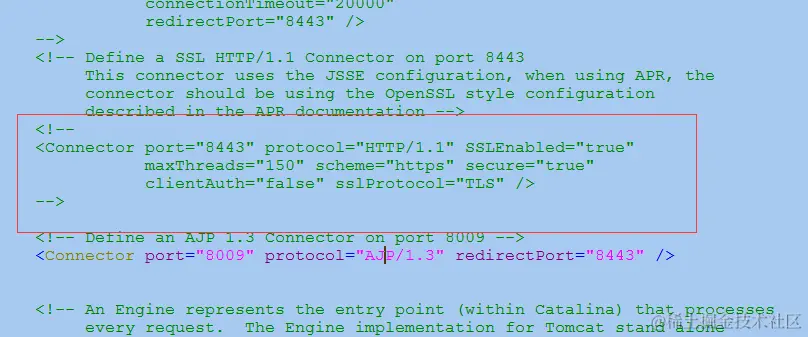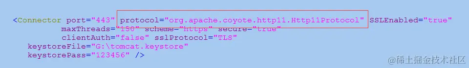1 <Connector port="8443" protocol="HTTP/1.1" SSLEnabled="true"