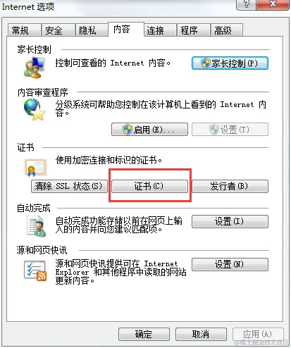 下面打开浏览器的Internet选项 ----> 内容 ----> 证书