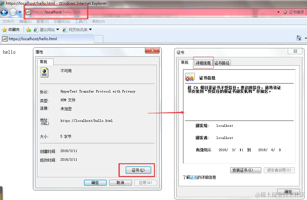 在这里我为了能导出证书, 在tomcat的根目录下新建了一个hello.html的页面