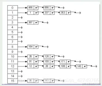 然后对hash值一样的放到对应的链表中 链表不断往后加