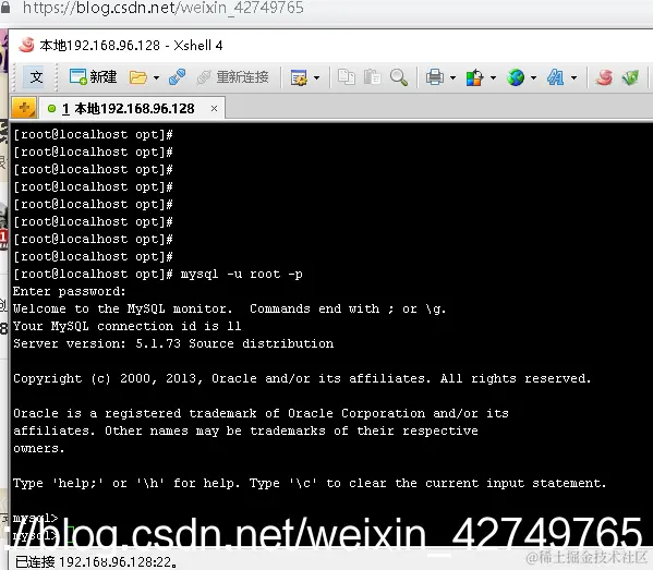 [root@localhost ~]# mysql -u root -p --连接mysql输入密码