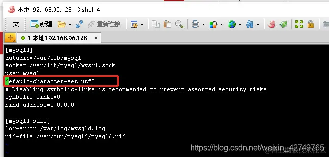 5. 在/etc/my.cnf 文件中加入默认字符集