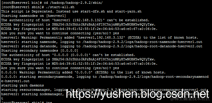 [root@hserver1bin]# cd /opt/hadoop/hadoop-2.9.0/sbin