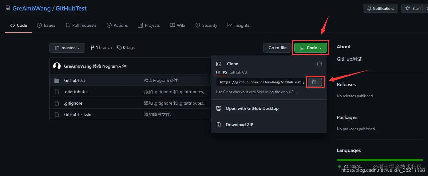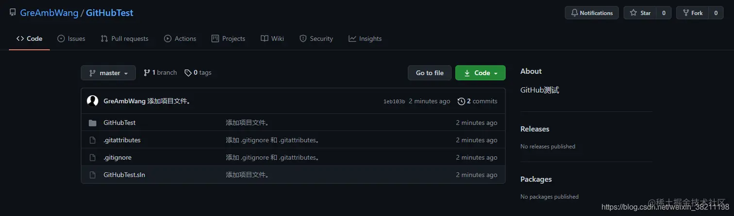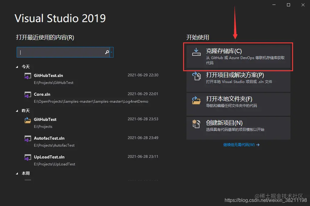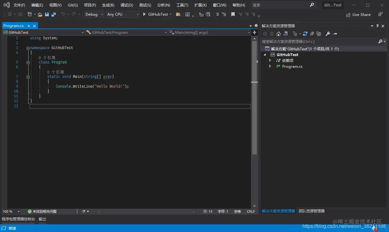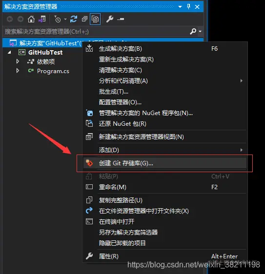 使用Visual Studio 2019创建项目,项目名为GitHubTest