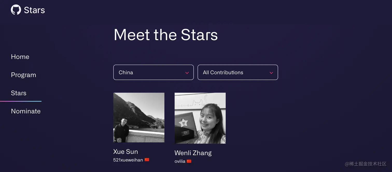 GitHub Star 来自于 GitHub 的 4000 万名开发者,不包括 GitHub 在职人员,一共 300 个名额。目前中国区共有两位:一位是开源项目 ECharts 的 VP(Ovilia),另一个是 HelloGitHub 项目的发起者(521xueweihan),你们的卤蛋。😘