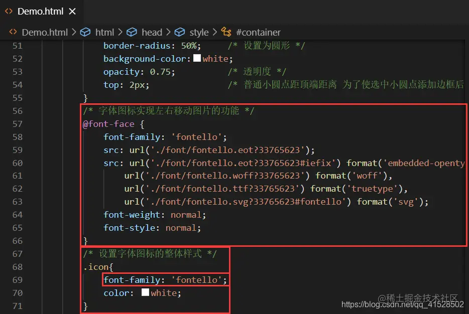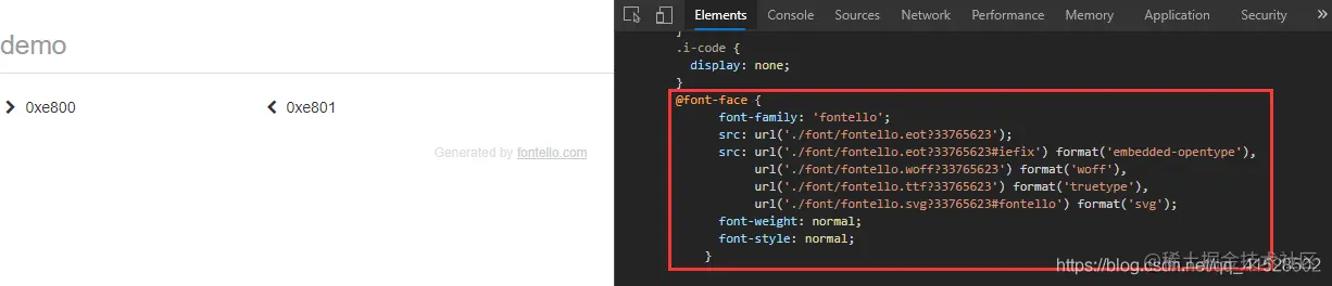 首先找到示例HTML的style中@font-face,添加到工程文件中,并添加icon样式