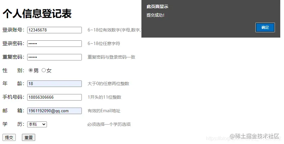 在事件处理中按照表单项后面提示的信息完成对应表单验证操作