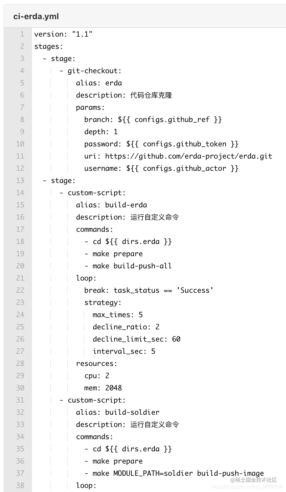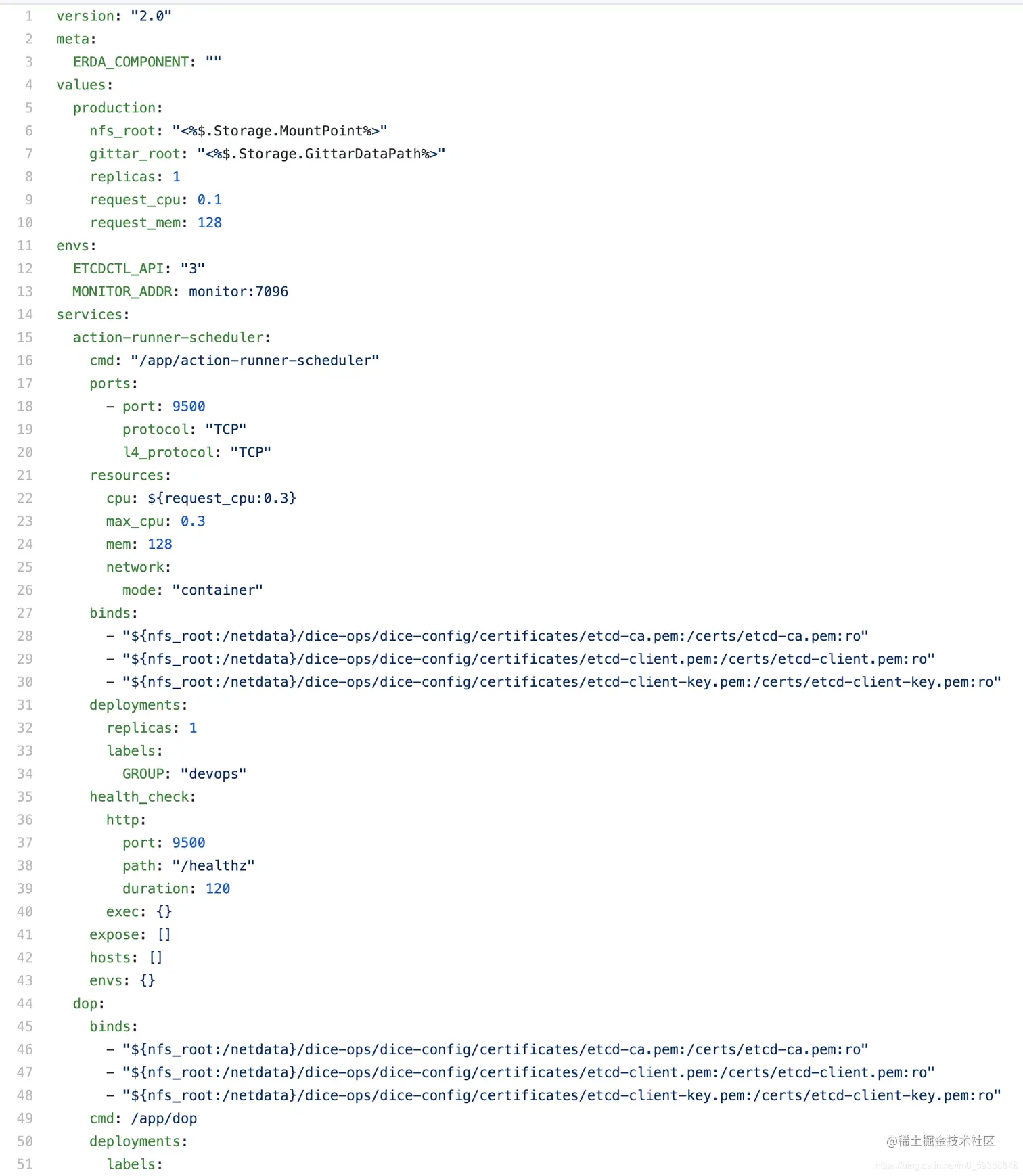 erda.yaml 部分截图如下: