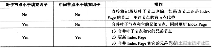 B+树的删除操作同样必须保证删除后叶子节点中的记录依然排序,同插入一样,B+树删除操作同样需要考虑以下三种情况: