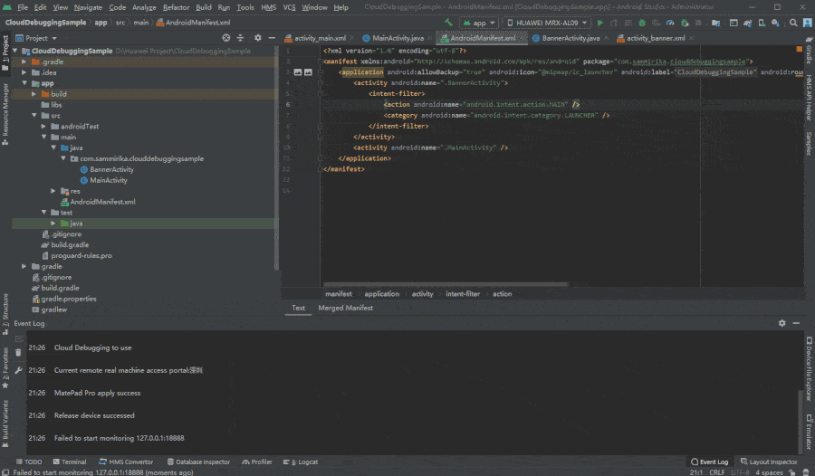 Cloud Debugging可为开发者提供集成HMS Core所需的调试能力,华为云调试提供最新最热的华为手机,让开发者可随时随地在IDE内直观了解App在华为机型上的运行情况。