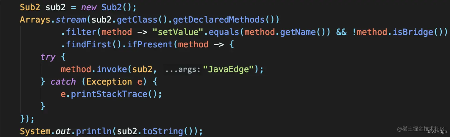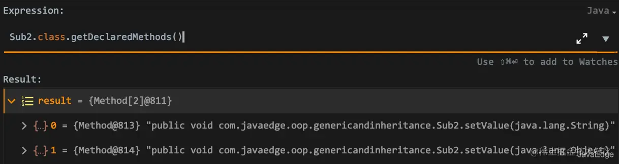 - 通过getDeclaredMethods获取所有方法后,还得加上非isBridge这个过滤条件: