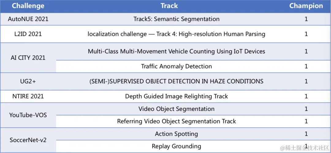 ▲ CVPR 2021百度参与挑战赛获得冠军具体信息一览