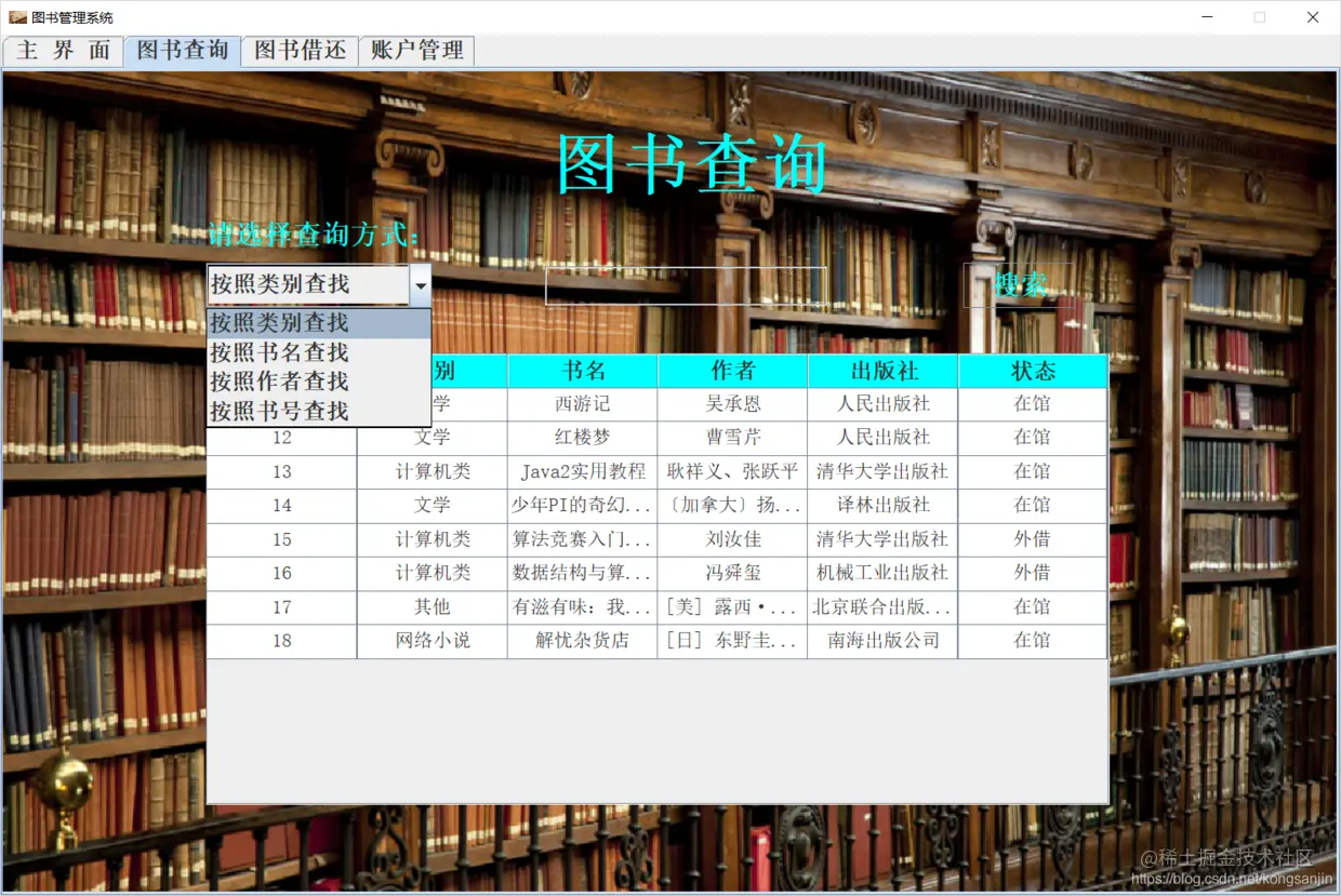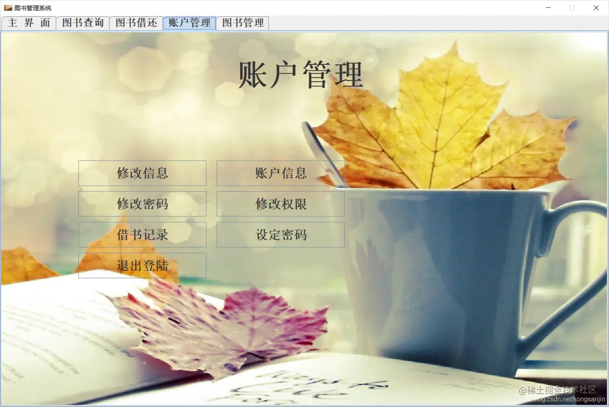 三.管理员:实现对图书的增、删、改、查,对所有借阅历史的搜索及所有账户的信息,用户的权限与管理,设定密码,借阅图书及对自己账户的资料修改