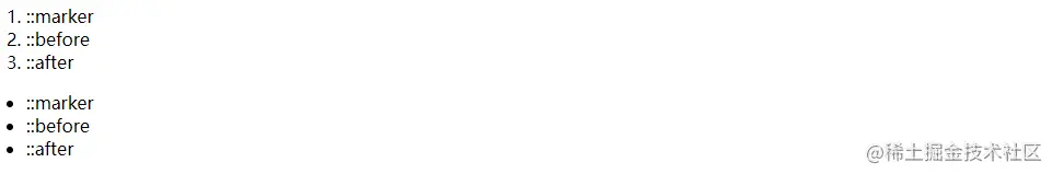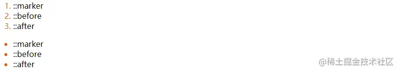 ::marker是在CSS Lists Module Level 3提出,于CSS Pseudo-Elements Level 4完善。**Chrome86+**对::marker开始支持。