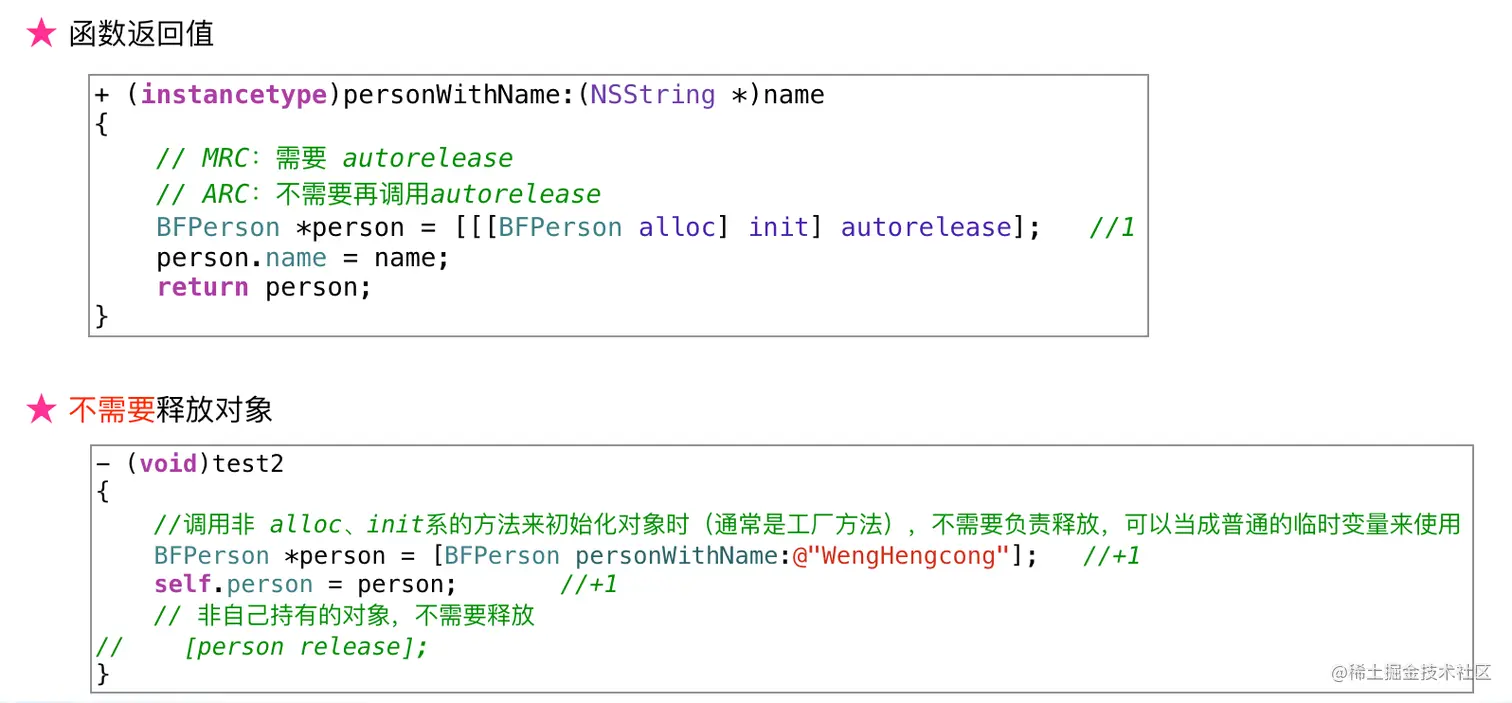在MRC时代,autorelease另外一个常用的场景就是方法返回值。