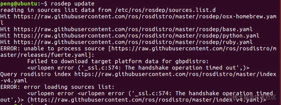 该步骤可以不执行,如果需要更新rosdep ,可以执行以下命令: