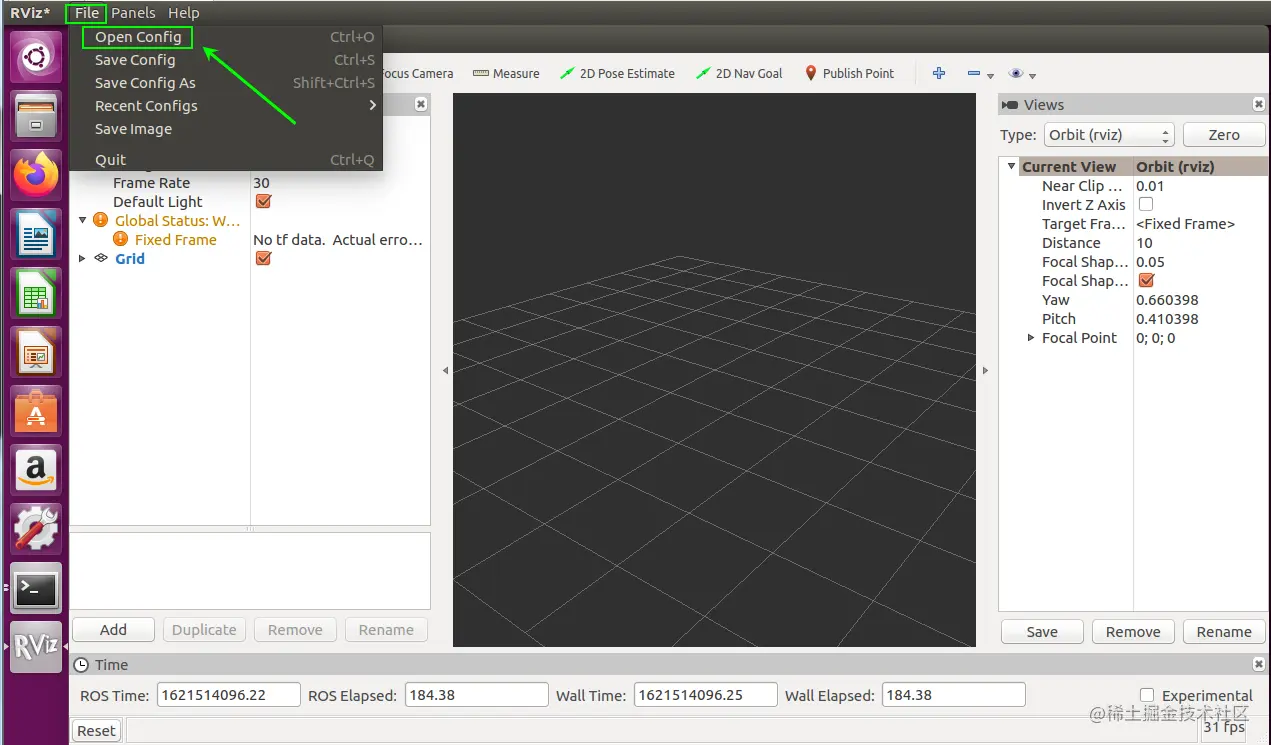 点击save后,显示如下画面,此时因为还未运行程序,所以地图没有初始化,看不到点云三维地 图。