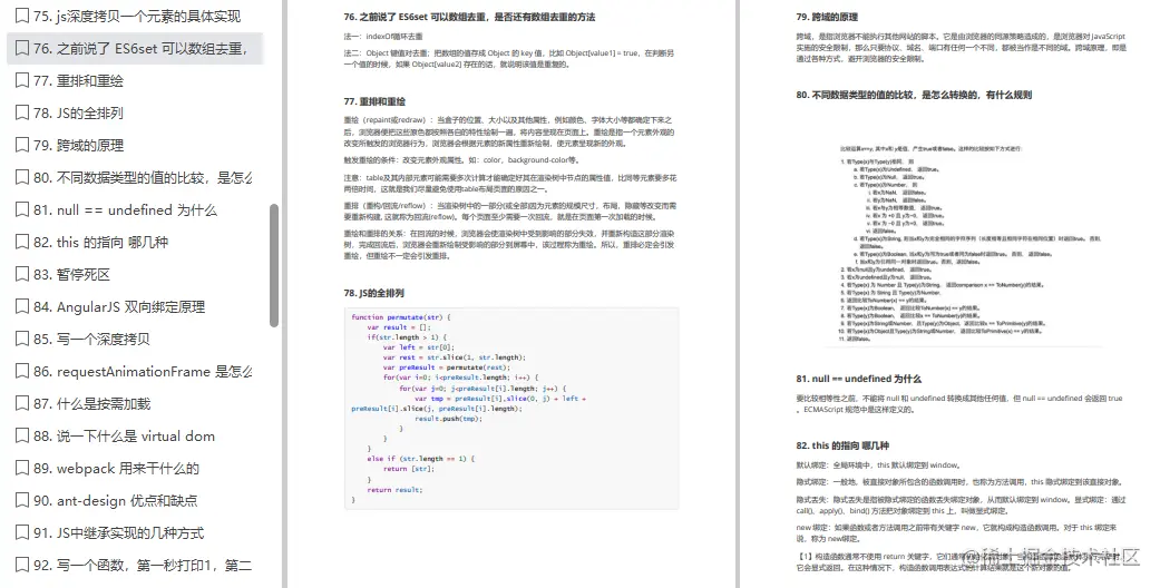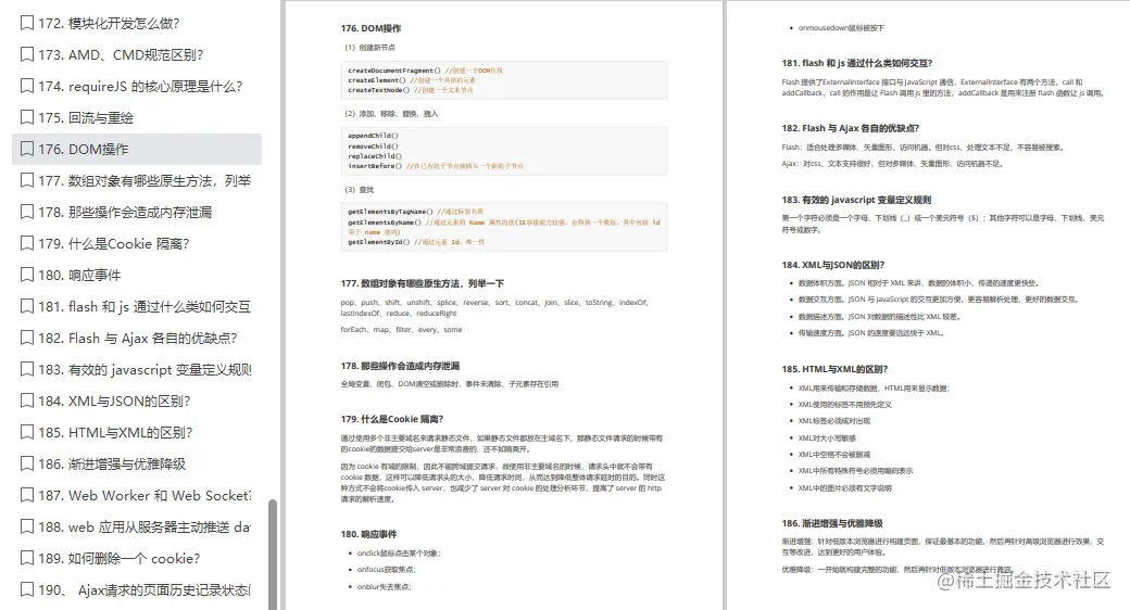 下文主要分享 190 道 JavaScript 面试笔记,篇幅有限,部分内容展示截图,有需要可以看文末免费领取!