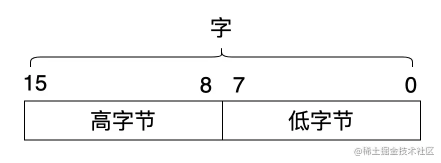 8086 中的寄存器都是 16 位的,可以存放 2 个字节,或者说 1 个字。高字节在前(bit8 ~ bit15),低字节在后(bit0 ~ bit7)。