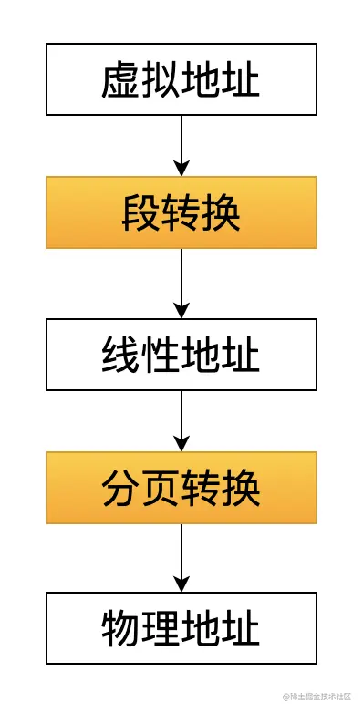 在 Linux 2.6 内核代码中,编译器产生的地址叫做虚拟地址(也称作:逻辑地址),这个逻辑地址经过段转换之后,变成线性地址,线性地址再经过分页转换,就得到最终物理内存上的物理地址。