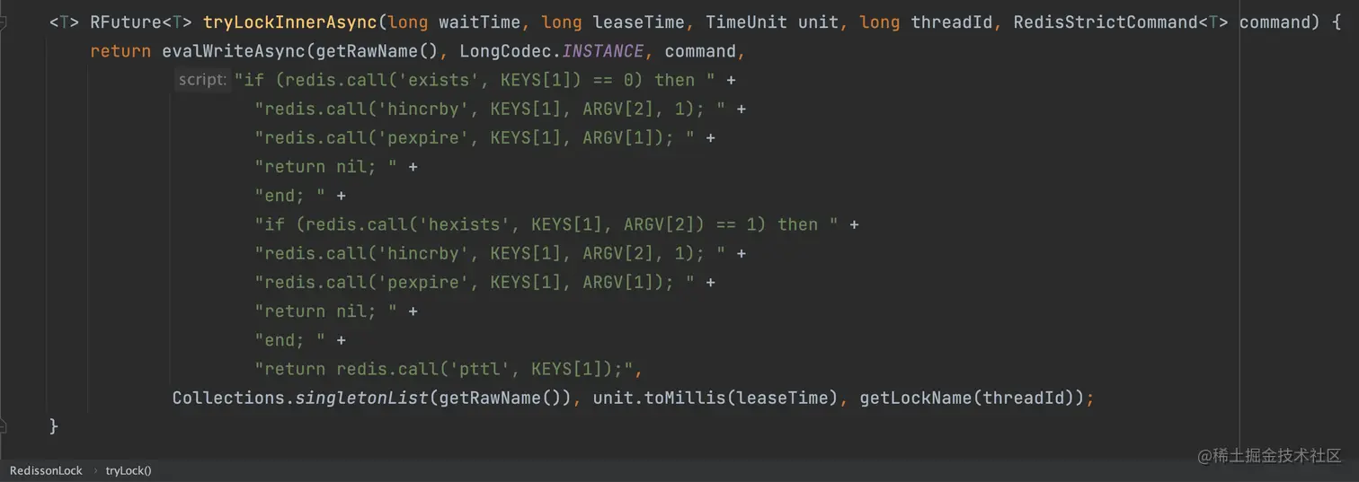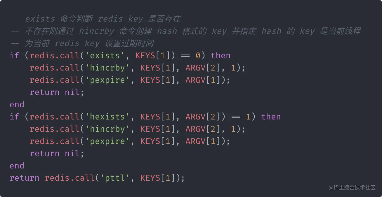真正的加锁,其实就是这么一段 lua 脚本。