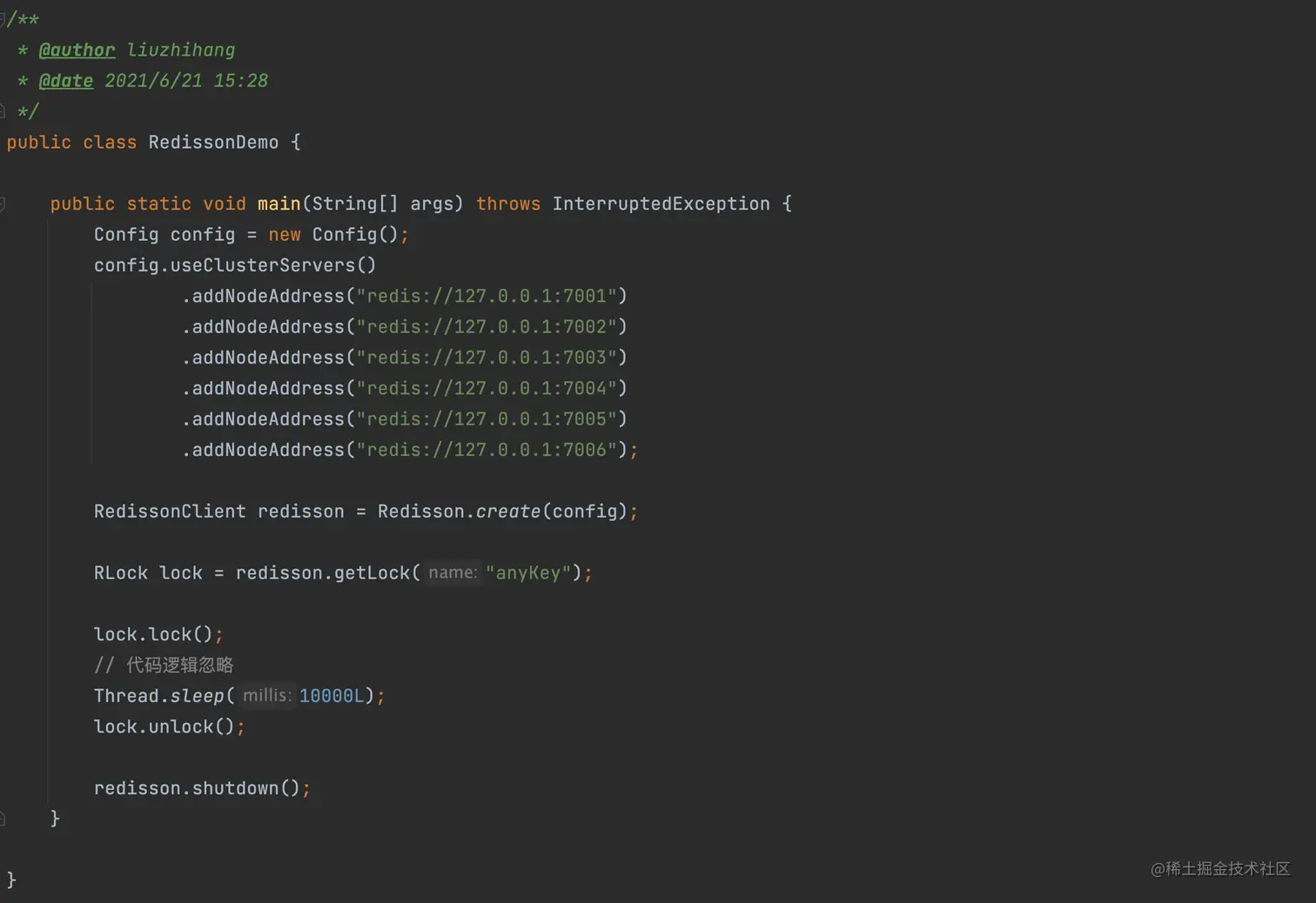 - ARGV[2]:getLockName(threadId),是 UUID 和线程 id 拼接起来的字符串,比如 931573de-903e-42fd-baa7-428ebb7eda80:1。