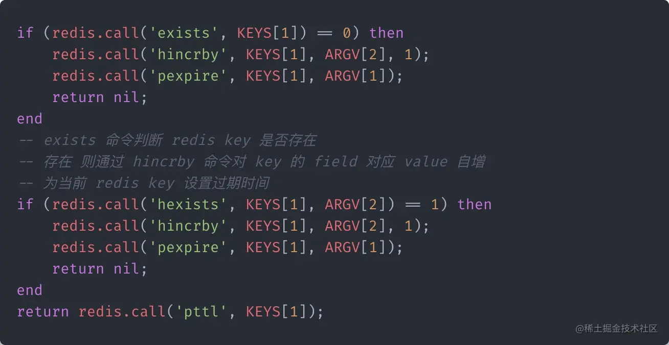 核心重点在 lua 脚本。 同时需要理解 Redis 的 Hash 数据结构。