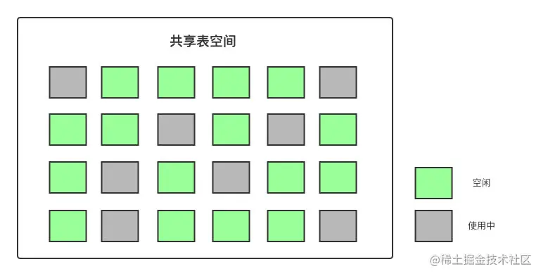 像上文描述的这种每张表都有自己单独的数据存储文件的,叫独占表空间;相对应的,InnoDB 还有自己的系统表空间,在系统表空间下,所有表的数据都存储在同一个文件中。