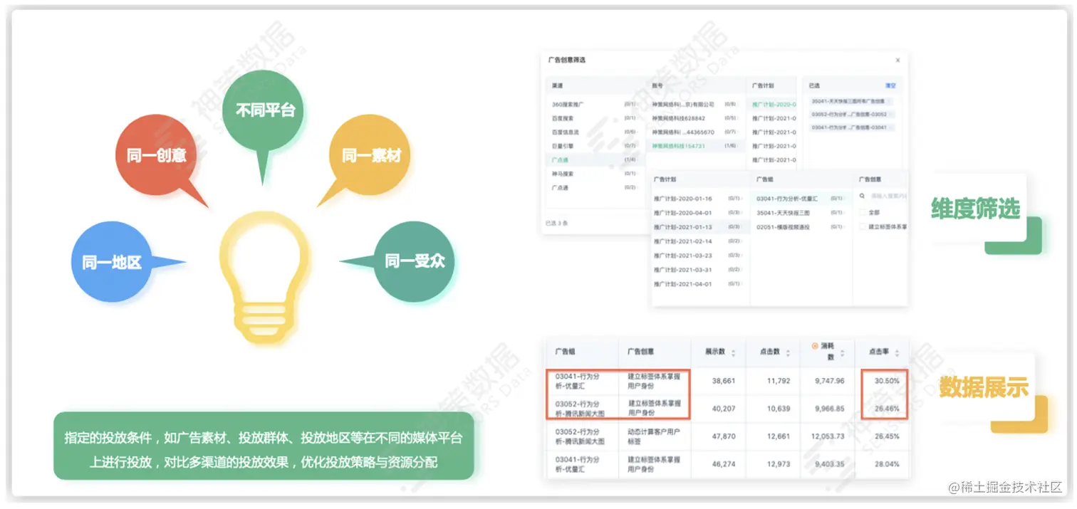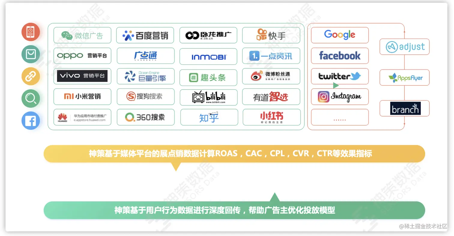 同时,结合神策数据 10+ 分析模型,可助力广告主在投放前全方位分析投放情况,深入了解用户需求和渠道特征,进行精准匹配,巧妙设计投放策略,实现高效数据应用与成本控制。