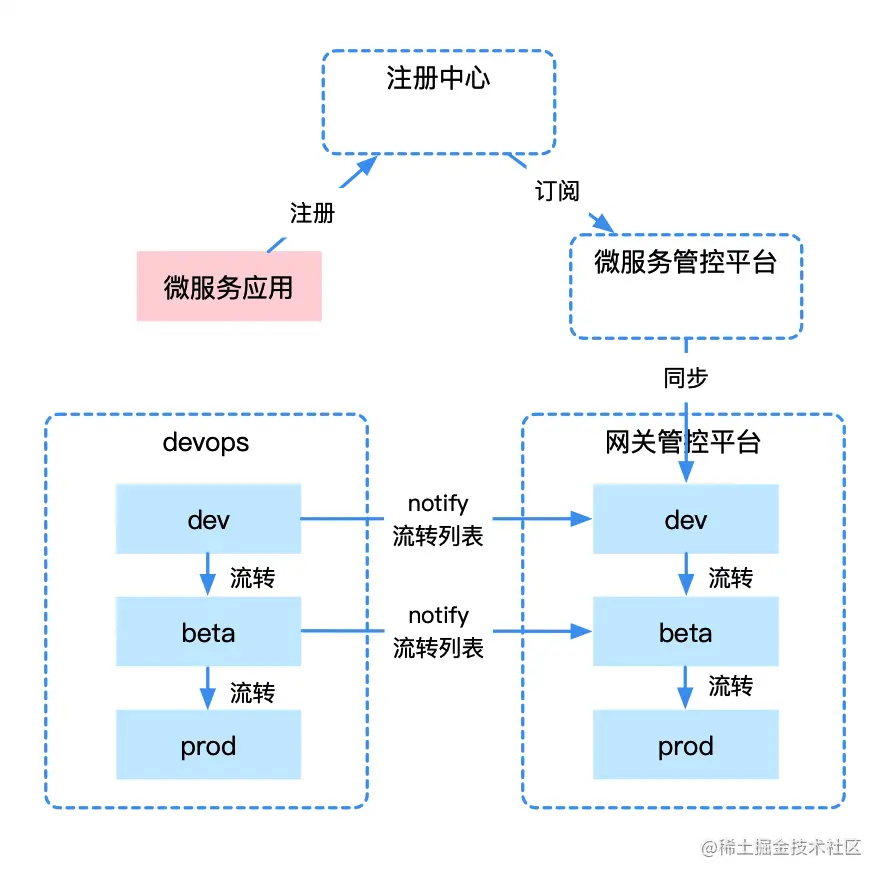 - 与devops平台配合,在应用发布流转时同步提醒进行api管理的发布流转。
