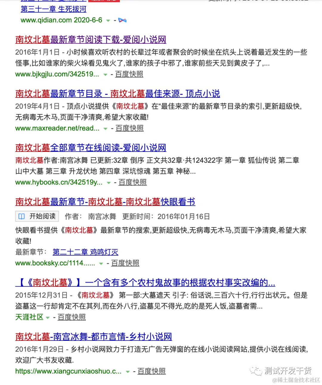 - 几年前喜欢写小说,写了一个叫《南坟北墓》 的农村恐怖小故事整合的长篇盗墓题材小说。虽然当时笔法稚嫩,大纲混乱,思维单纯。但是还是斩获了起点的周最佳新人榜前十。阅读量短短一个月也破万。甚至收到了几个小网站的签约邀请。但是没过几天,盗版泛滥,百度一搜一大片。我的id:我去热饭/南宫冰舞 也被各种拆解组合。加上当时我工作忙,就tj了,停更了。打算等之后闲暇下来,重新写,以之后的写作水平和生活阅历,肯定写的比几年前的要好很多。而这个《南坟北墓》 就当练笔和试水了。不过最近阅文集团闹的事那么大,轰动整个写作圈,我也是觉得还是再等等吧。(我曾经在阅文集团做过安静并幼小的自动化测试)
