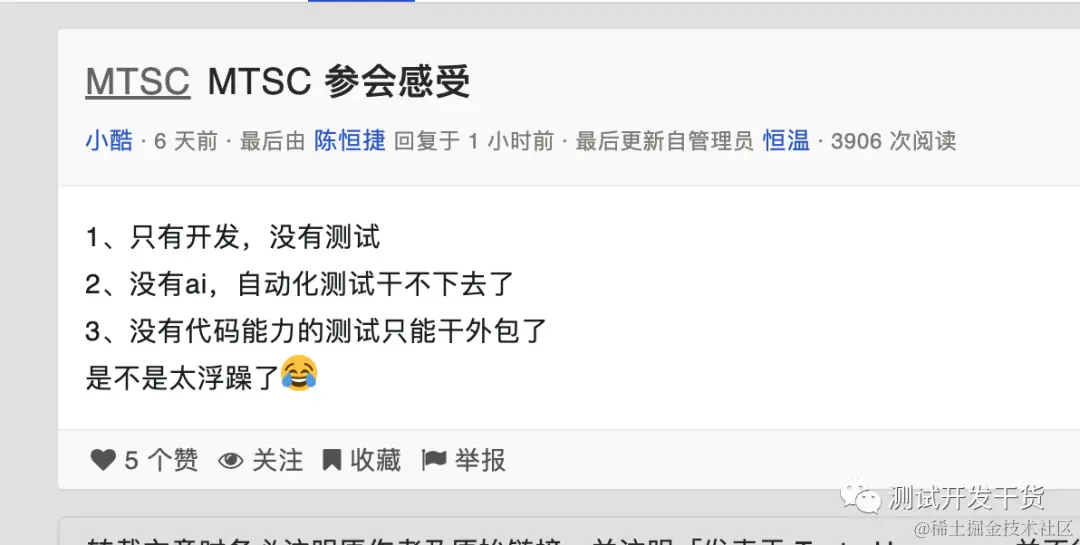 其实这种感觉的人不少,最近内卷的忧虑之风已经让很多人担惊受怕了。结果测试技术发展的如此迅速,加上有意的分享和扩散和权威化主流化,更加导致了全体测试届的焦虑。